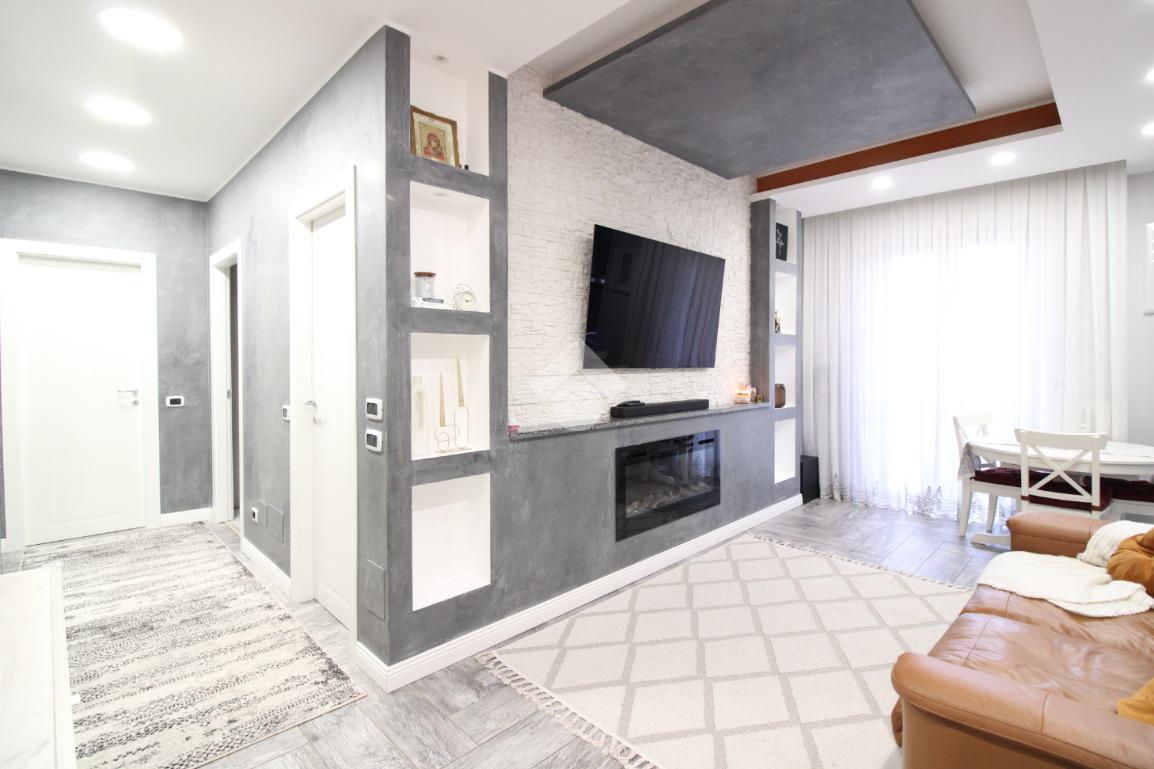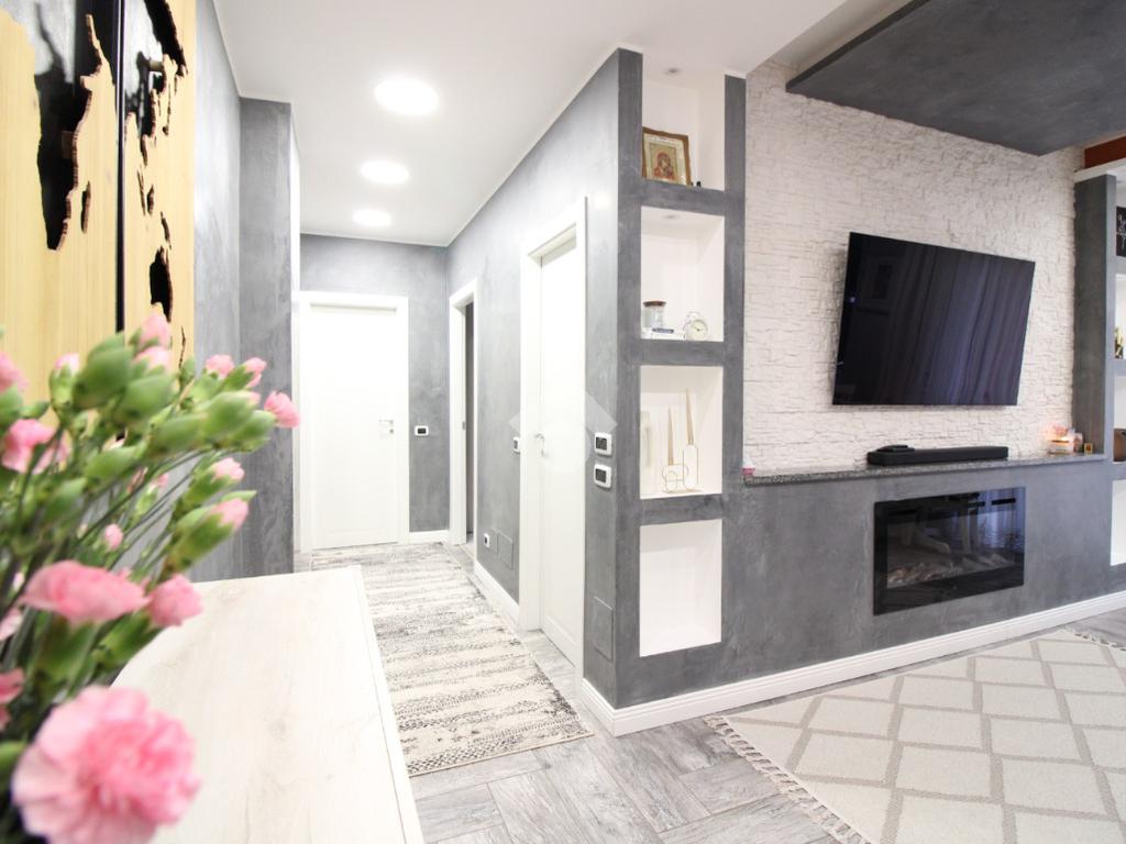 L’appartamento è stato completamente ristrutturato tra il 2015 e il 2020 ed è dotato di porta blindata, serramenti in PVC con doppio vetro, cancelletti di sicurezza e aria condizionata.