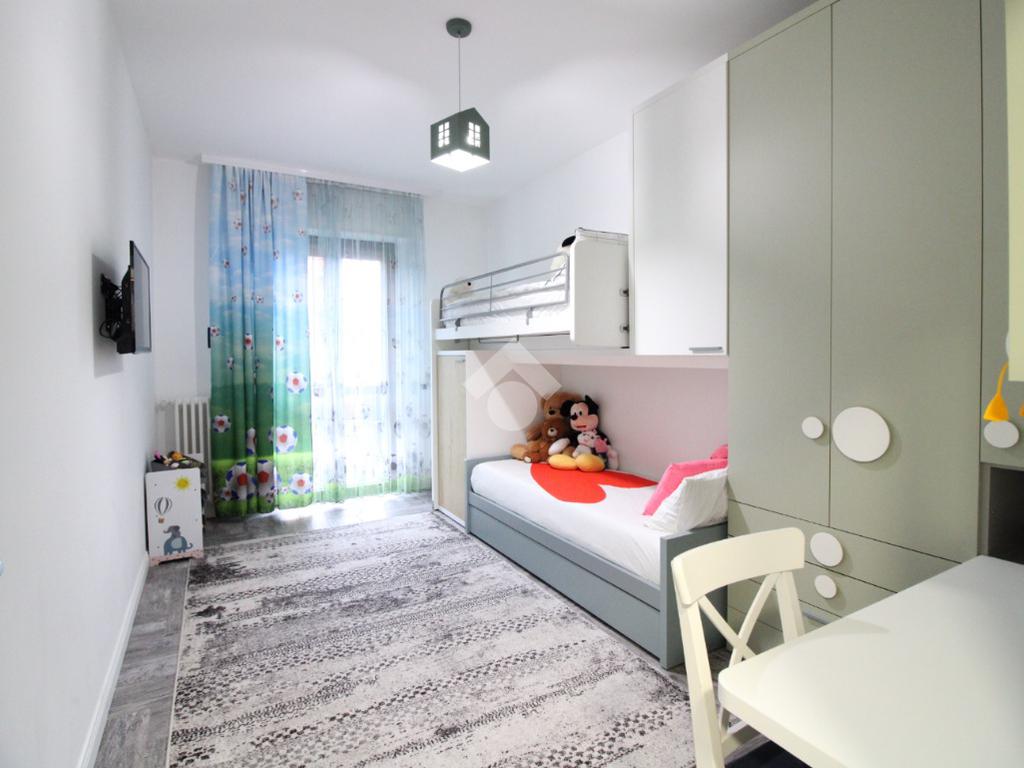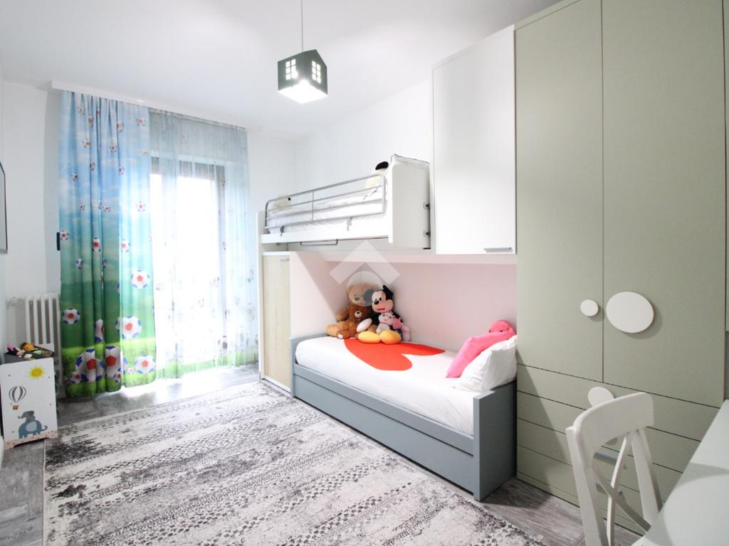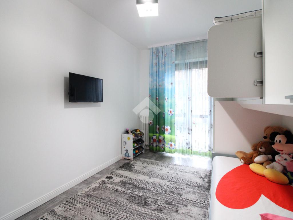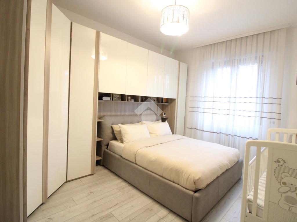 La superficie è di circa 98 mq ed è così composta: ingresso, luminoso soggiorno con accesso al balcone, cucina separata; attraverso il disimpegno si accede alla zona notte, dove troviamo una camera matrimoniale con uscita sul terrazzo, una seconda ampia camera da letto e un bagno finestrato con doccia.