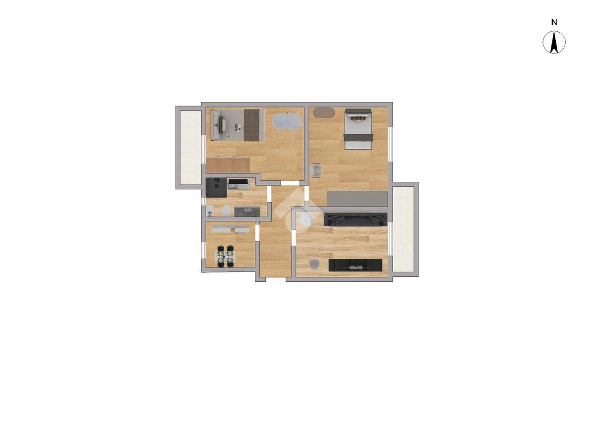L'appartamento si compone di tre locali: un soggiorno accogliente, due camere da letto luminose e una cucina separata.